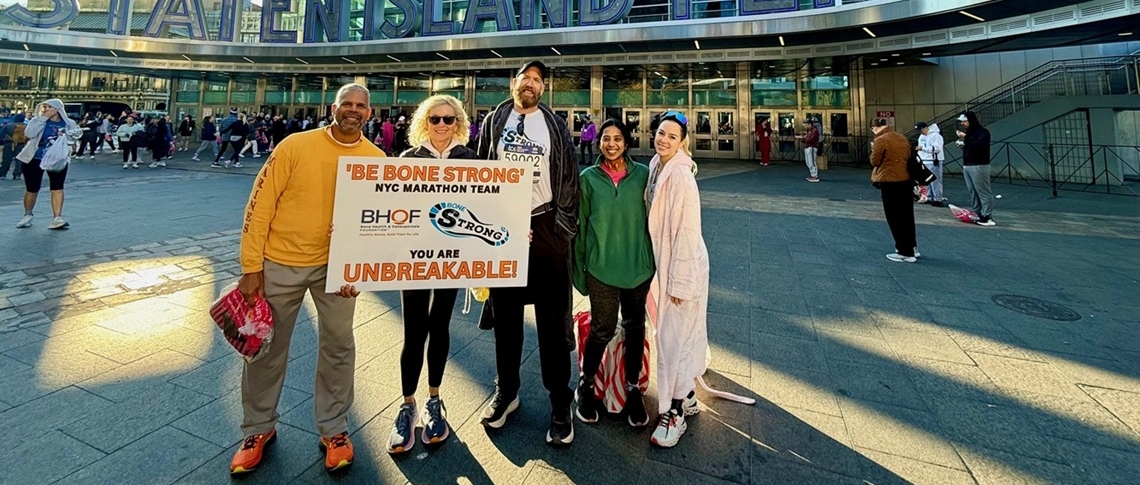 BHOF is honored to be a returning official charity partner of the 2025 TCS New York City Marathon. The BHOF “Be Bone Strong” team is a group of inspired, dedicated runners committed to showcasing the critical importance of bone health throughout the lifespan. These devoted runners will raise awareness and encourage others to prevent osteoporosis and broken bones by taking steps to promote strong bones for life! This is a cause near and dear to their hearts.